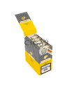 Tubos are great for traveling, whether it’s for a day trip or a week-long vacation. They’re easy to pack as you can simply toss them in any bag or suitcase and hit the road or the skies. It also makes as a great carrying case you can put in any pocket and the nice bright yellow tubo dons a cap that imitates the band on the cigars inside as well as a golden band when the top meets the bottom. The box itself is somewhat admirable as a one-tiered black box lining all of your beautiful cigars up side by side.